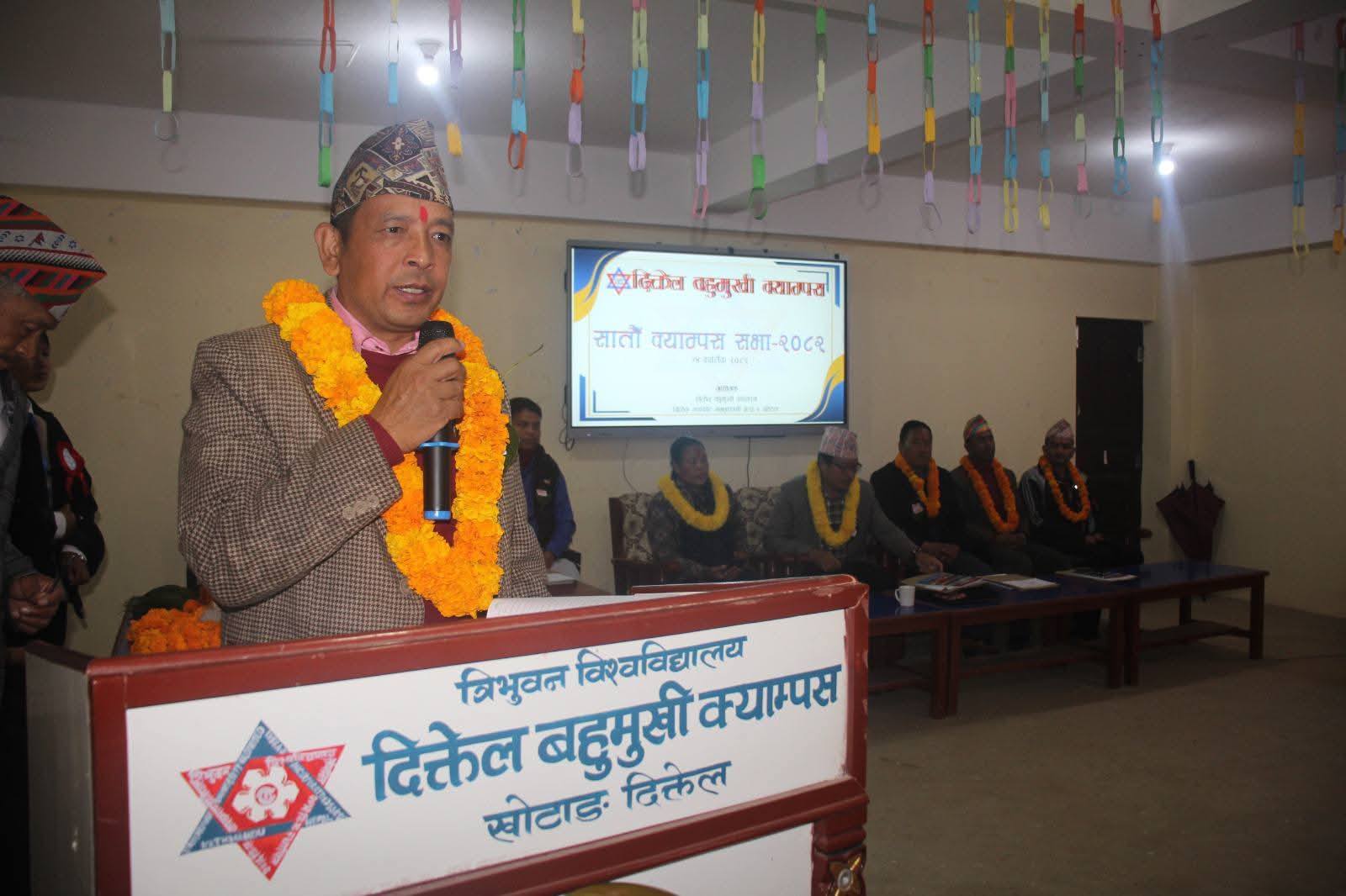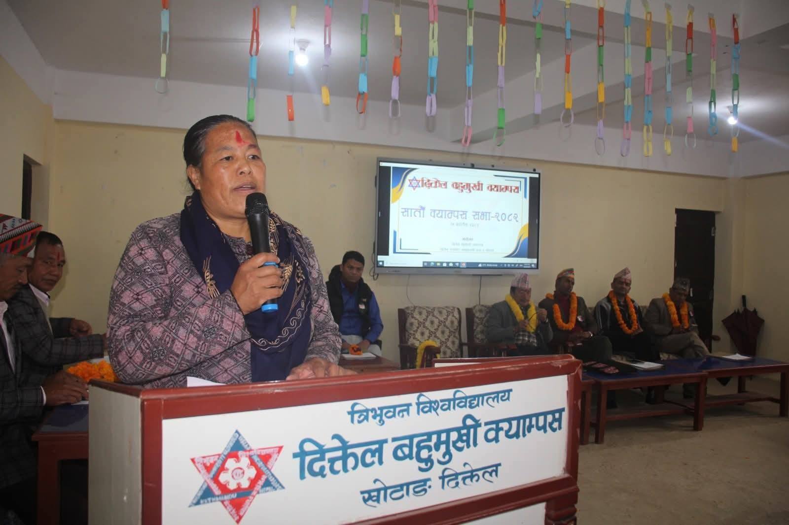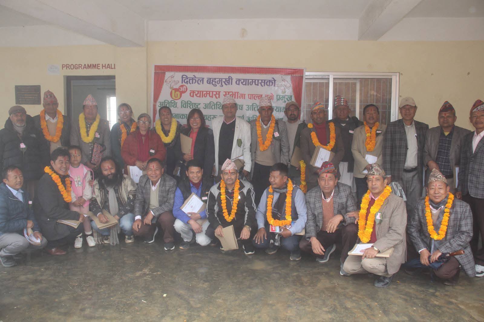 Diktel Multiple Campus (DMC), established in 2037 B.S. affiliated to Tribhruvan University, is the first educational leading institute in Khotang district. The then educators, social workers, guardians, politicians, well-wishers had established it with theirs’ joint efforts to offer educational services to the people of Khotang and its neighbouring districts. It is a non-profit oriented public campus, located at Diktel headquarter of Khotang district.
